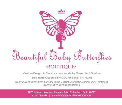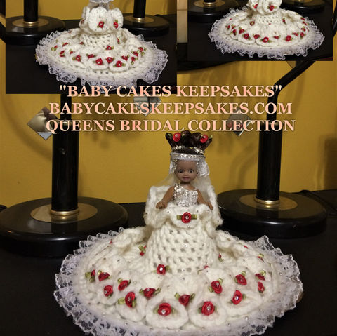 "BABY CAKES KEEPSAKES" are uniquely created custom couture designed elegant dolls designed by hand from their hair styles, dresses & accessories created by Queen herself out of LOVE! These dolls are custom keepsakes created to celebrate the arrival of your new born princess, little ladies & their special birthdays & grown ladies & their special wedding day!